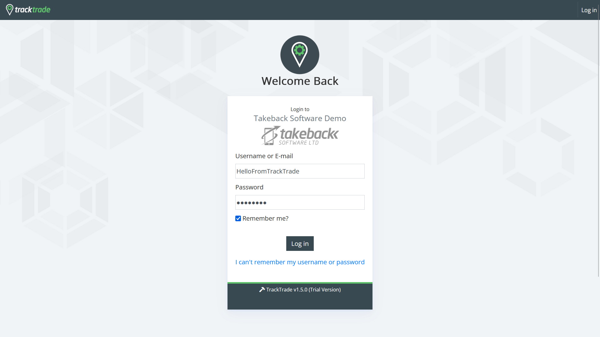 Note: The URL should look like {organisation}.tracktrade.co.uk (e.g. johnsrepairs.tracktrade.co.uk).