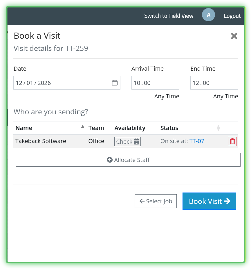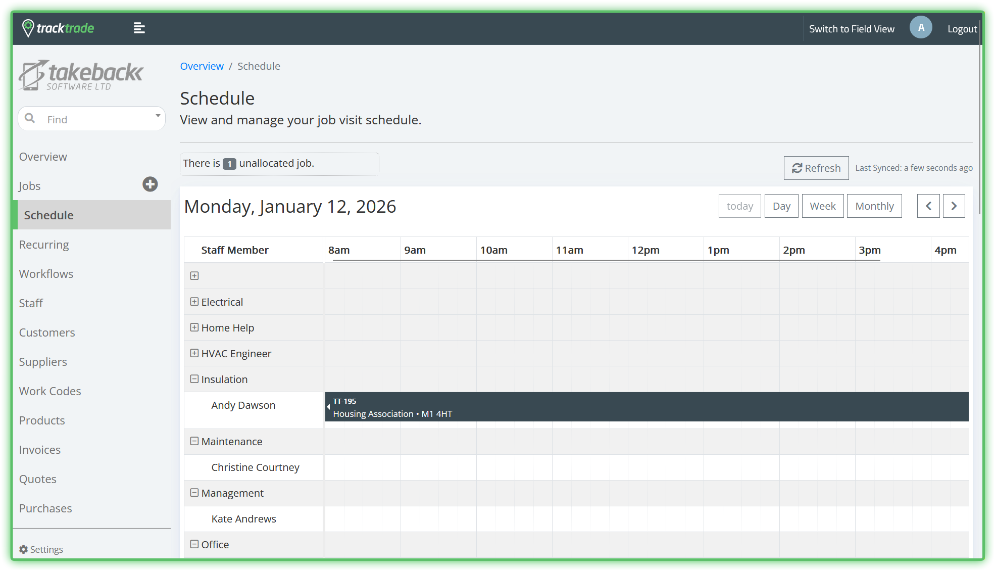 Not Allocated - Jobs that have been created but have no Field Staff yet allocated to them.