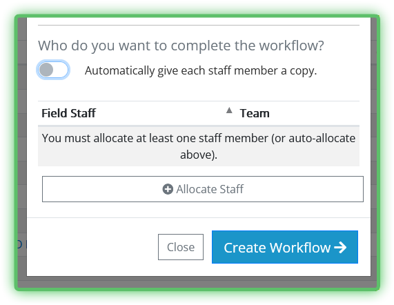 By default, you can auto-assign a copy of the Workflow to all Staff on the associated Job.