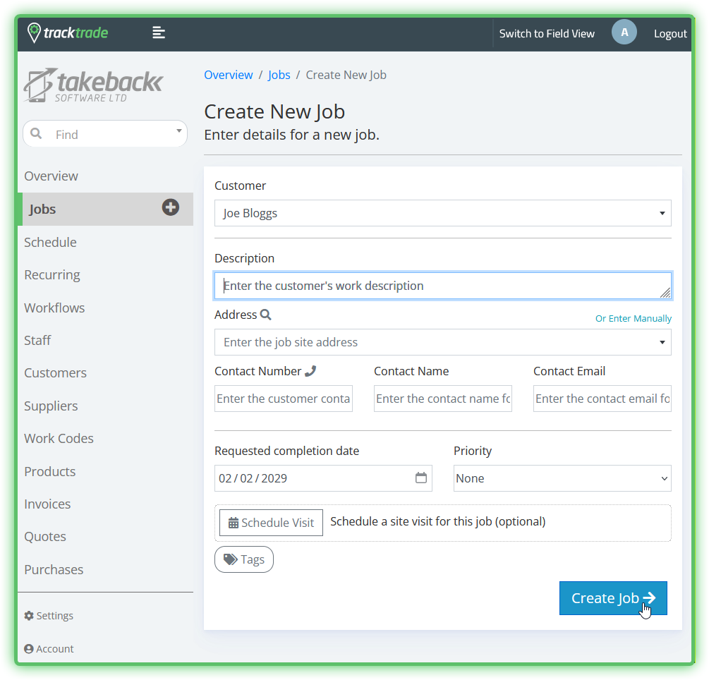 A Customer, description and Job site address are required at a minimum but, as we said in the previous article, the more details you can add in, the more useful the Job feature will be.