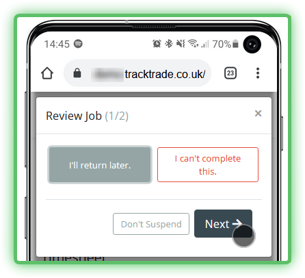- Open your app. You should see the active Job that you have started. At the bottom of the screen, tap the Suspend Job button.