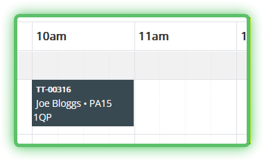 The main section is the calendar view which lists all Staff in your system, grouped by their assigned Team name in their profiles, and places them against a timeline. The timeline shows the current day by default and each block represents 15mins. In the weekly and monthly views, each block is a single day.