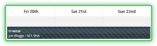 Diagonal stripes across multiple consecutive Visits show that these belong to the same Job.